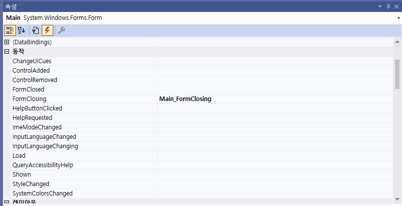 폼이 종료되는 시점에 뭔가를 수행하려면 FormClosing 이벤트를 사용하는 것이 권장 되며, FormClosing 이벤트시 동작을 구현 하기 위해서는 아래 절차를 수행하면 된다.