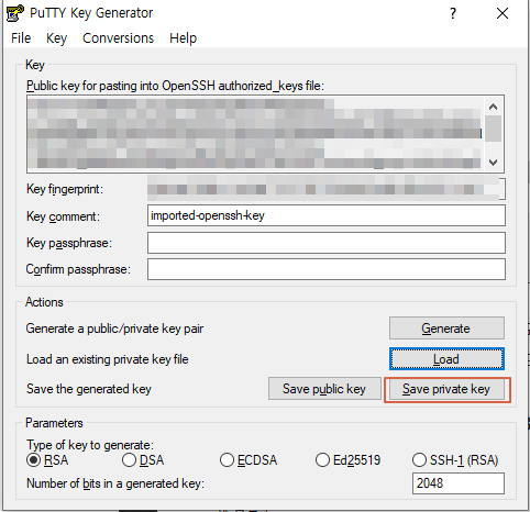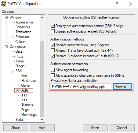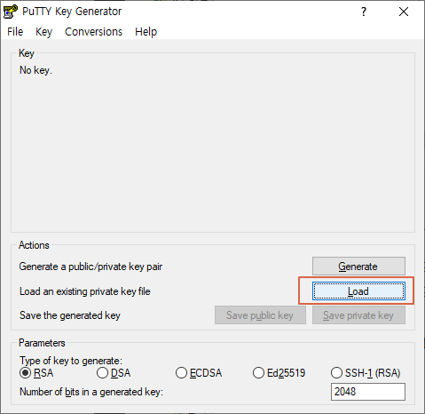 Putty 이용 SSH 접속. Private Key PEM to PPK 변환