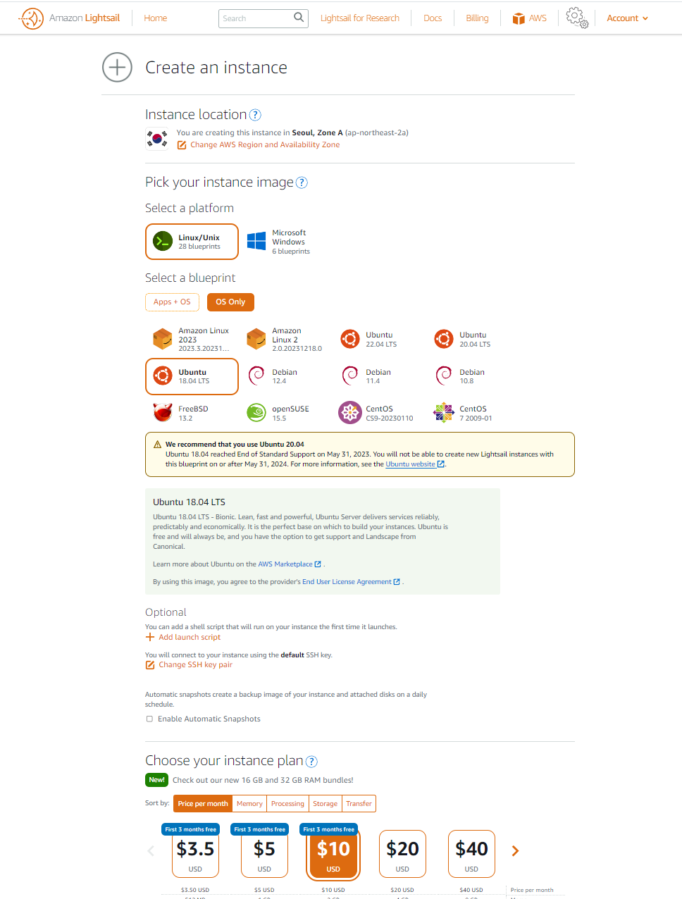 우선 급한대로 AWS Lightsail에 구축을 해서 테스트 한 다음, 해당 서버를 NCP 쿠버네티스에 커스텀해서 배포 할 계획 입니다. Steve를 NCP 쿠버네티스에 배포하는 방법은 추후에 포스팅 하도록 하겠습니다.