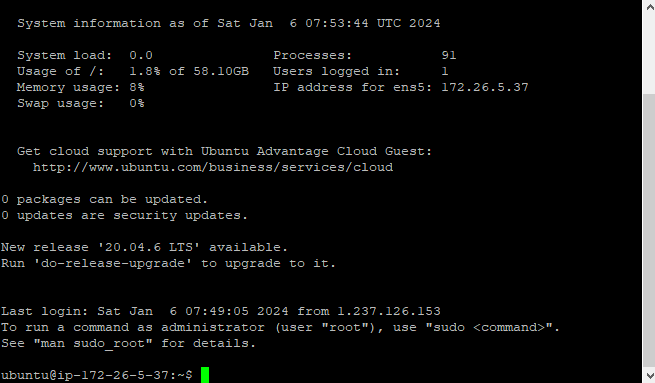 SSH 연결이 정상적으로 수행되면 아래와 같은 화면을 볼 수 있습니다.